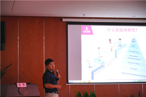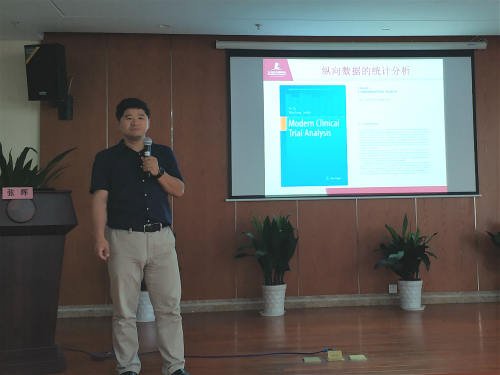 随后,张晖教授从临床研究常用的统计学概念讲起,用生动诙谐的语言描述了临床统计中常用的概念,比如样本、估计、置信区间、数据正态分布、Poisson分布、t检验、一元回归分析及多元回归分析等,并结合实例详细阐述了临床研究中问题假设与数据的相互关系及其分析技巧。课上,张教授还与听课人员进行了问答互动,大家就临床研究中实际遇到的统计学问题进行提问,张教授都一一给出详细解答。