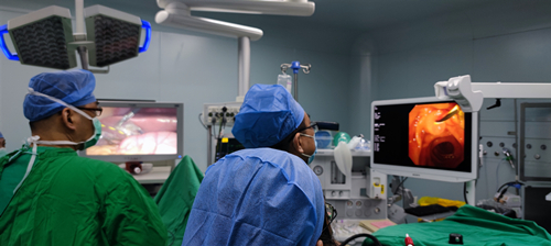 住院治疗期间,患者合并有低血氧症、中度贫血低蛋白血症高乳酸血症,期间发作急性左心衰一次,病情危急。113日,患者病情变化,体40.7℃,伴有持续性的中上腹痛,恶心呕吐等症状。消化内科杨晓军主任决定立即开展急诊内镜下逆行胰胆管造影(ERCP取石术,以改善患者梗阻症状为确保患者术中麻醉安全,消化内科邀请麻醉科专家急会诊,综合评估患者病情,制定了周密的手术方案