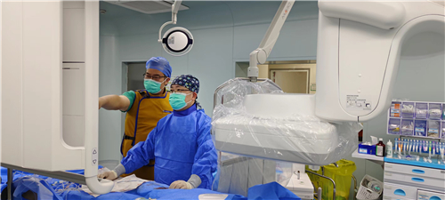 术中,神经外科陈俊杰医疗团队默契配合,凭借精湛的技术和丰富的临床经验,通过股动脉穿刺经导管到达靶血管,成功完成异常供血动脉栓塞操作。术后患者恢复良好,顺利出院。