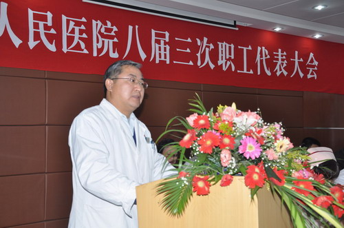 1月22日下午2时30分,全体主席团成员在主席台依次就坐,大会在庄严的国歌声中拉开了序幕。许长征院长首先代表院领导向全体代表作医院工作报告和医院财务预决算的通报。许院长回顾总结了2009年医院主要业务指标完成情况、医院所开展的主要工作及面临的挑战和存在的问题,并对今年的工作进行了具体的部署。他号召全院职工站在新的起点上,牢记区委、区政府和全区人民的重托,抓住发展机遇,增强加快发展的紧迫感和责任感,努力把西部院区做强做精,把东部院区做大做优,早日实现基本现代化医院。
