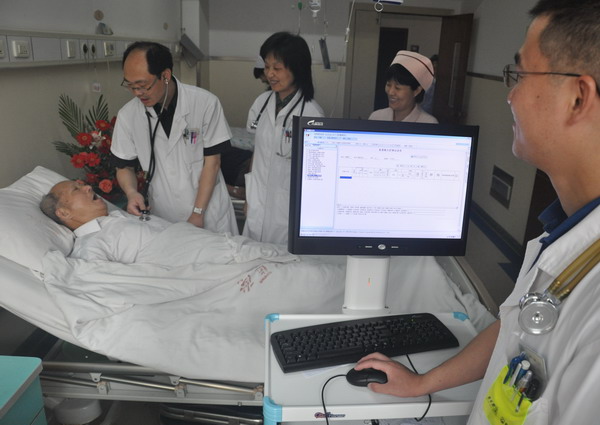 6月22日,31辆装载着无线网络的移动查房车分发到了我院各病区,这是我院在信息化建设方面的又一成果。推上查房车,医生在仔细询问和检查病人后,根据患者病情很快就在电脑上开好了医嘱,信息即刻传输到护士站的电脑终端,护士在电脑前迅速地处理好了医嘱,这一切完成在弹指之间,科技的魅力让人折服。