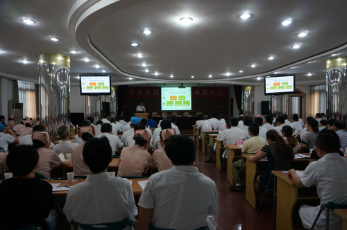 随后,汤士忠执行院长对等级医院迎评工作作具体部署。汤院长强调,开展等级医院迎评工作,要坚持“以评促建、以评促改、评建并举、重在内涵”的原则,重点围绕“质量、安全、服务、管理”等主题,严格按照卫生部二级综合医院评审标准要求,加强内涵建设,提高医疗质量,提升整体服务水平。