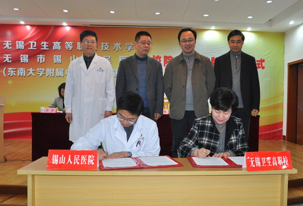 1月14日上午,我院与无锡卫生高等职业技术学校合作办班签约揭牌仪式在医院多功能会议厅举行。此后无锡卫生高等职业技术学校护理专业的48名在校学生将在我院完成二年的专业课学习、见习及毕业实习任务,这标志着我院从无锡卫生高等职业技术学校的“实习基地”荣升为“教学医院”。