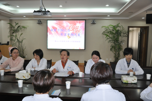 座谈会上,朱兰主席首先向在座的各位女职工致以节日的祝贺,并通过她们向全体女职工转达节日的问候和良好祝愿。她说,我院723名职工中,其中有525名为女职工,占到了全院职工总数的72.6%。多年来,医院事业能取得长足发展,与全体女职工辛勤工作是密不可分的。广大女职工围绕医院中心工作,发扬“自尊、自信、自立、自强”的精神,积极投身到医疗、护理和行政管理等各项工作中,勤勤恳恳,兢兢业业,加班加点,舍“小家”顾“大家”,为医院发展建设作出了积极的贡献,充分发挥了“半边天”的作用。她同时希望大家在做好本职工作的同时,不断学习,做一名健康、美丽的知识女性。