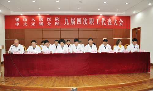上午9点,大会在庄严的国歌声中拉开帷幕。会上,全体代表认真听取并审议了华建平院长所作的《2015年医院工作情况和2016年医院工作计划》、《2015年财政决算执行情况与2016年财政预算》;陈益飞副院长所作的《2016年绩效工资考核分配方案总体思路及2016年绩效工资实施办法》;执行院长范健所作的《中大无锡分院2015年合作共建工作总结及2016年合作共建工作计划》报告。