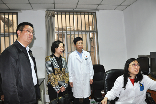 陈区长一行首先来到设于影像科的影像诊断中心,详细了解了影像诊断中心的运行情况,观看了信息化平台的应用展示。随后来到四楼会议室,听取了卫计局分管该项目的孙根福副局长的汇报,大家就影像诊断中心运行中存在的问题进行了探讨。