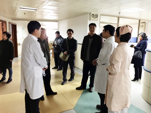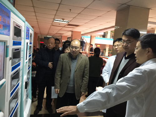 现场督查时,华院长向张主任等市卫计委领导介绍了我院与东南大学附属中大医院合作共建工作开展情况、医联体建设及新医院建设等主要工作的进展情况;领导一行走到门诊二楼检验科,华院长向各位介绍了我院投入运行的检验检查报告自助打印系统的使用情况,同时查看了内科门诊的开诊情况;张主任一行还来到了1号病房大楼,到心内科、神经外科、二病区了解我院医疗工作开展情况,所到病区科主任、护士长一一介绍了相关情况。