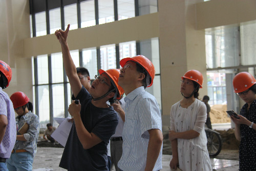 当天下午在华建平院长的带领下,20余人先后踏勘了门诊一楼的标识标牌样板、门诊二楼的制剂室净化区域拆改情况、门诊四楼的信息机房施工进度、产房等7个区域的施工情况。集中反馈时,集体讨论明确了住院部VIP病房橱柜板材色调、窗帘的颜色等,讨论了医用等离子体空气消毒器的安装情况。