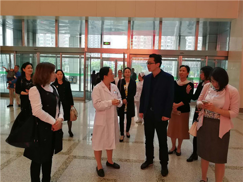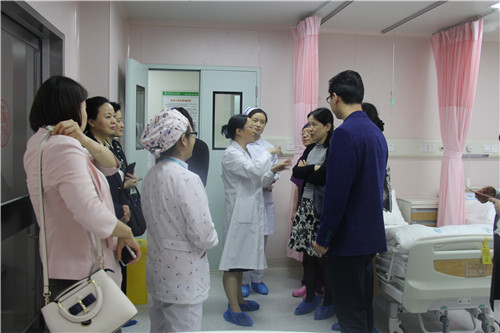 调研组一行先后到我院妇产科门诊、产科病房及产房等相关科室进行了考察,对我院温馨、舒适的诊疗环境连连称赞。在随后召开的座谈会上,我院党委书记、院长华建平对医院概况及妇产科、新生儿科等专科建设情况进行了重点介绍。最后,祁靖然主任对“导乐分娩”的立项背景、意义及流程等进行了详细介绍,与会人员就该项目相关情况进行了交流和探讨。