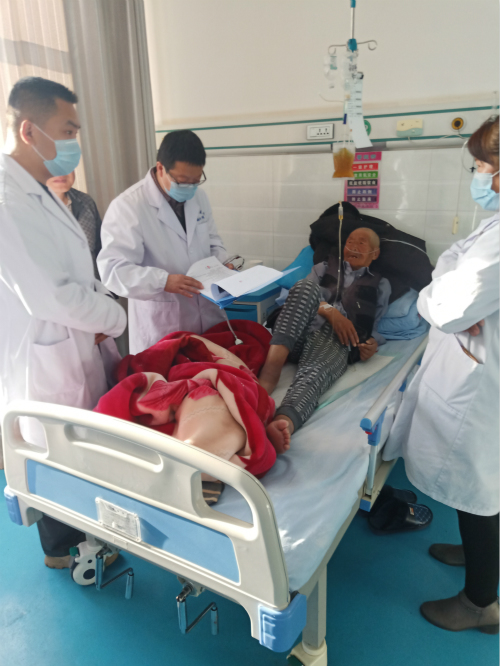 由于当地群众喜食牛羊肉类等高热量食物,高血压、糖尿病发病率高,东亭分院的王磊医生和鹅湖分院的荣锦鸿医生发挥自己专科特长,一方面努力提高当地医生对高血压、糖尿病危害性的认识,一起制定严格的“降压、降糖”方案,另一方面提高病人对控制饮食的重视,成功地帮助好几位高血压、高血糖的患者控制了病情,赢得了患者一致的好评与认可。