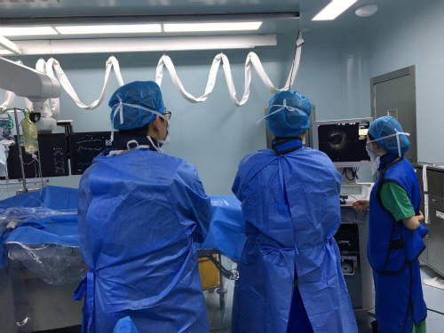 为顺利完成IVUS检查,科内安排专人进修学习,掌握机器的使用方法,多次练习超声导丝的放置,学以致用。