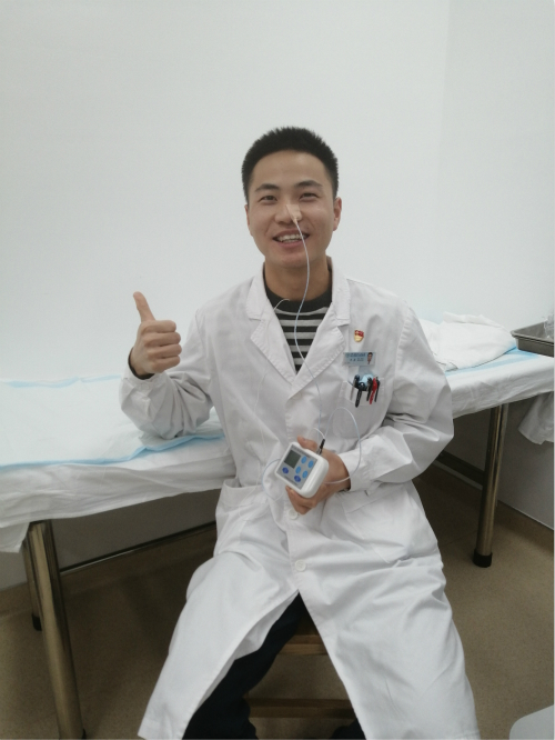 本院车磊医生是第一位体验检测仪的志愿人员,车医生平时胃肠道就有不适,想做胃镜检查,一直没空,此时新技术开展招募志愿者,他就第一个报名体验。他体验了24小时上消化道PH检测,结果提示他轻度反流倾向。车医生的感受是:全程无痛、无不适感,耐受性好,不影响工作、吃饭、睡觉。“和消化内镜相比,这个检测真的是太棒了,病人最害怕的是疼痛,这个仪器不仅能准确提供诊断依据,最主要的是无痛感受,应该让更多的人知道。” 车医生体验后激动地说道。