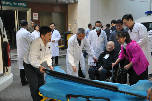 老干部病区病人多是年老体衰、病情复杂的患者,搬迁筹备小组为了做到万无一失,每辆车都安排了1名医生和1名护士随车保障,对重症患者随车安排了2名医生和1名护士,另外还安排了麻醉师。在转运前期,搬运小组多次开会讨论患者转运计划、救护车的安排、急救专科医生和专科护士人员调动,以及急救设备的安排,并对突发情况做了详细的预案。