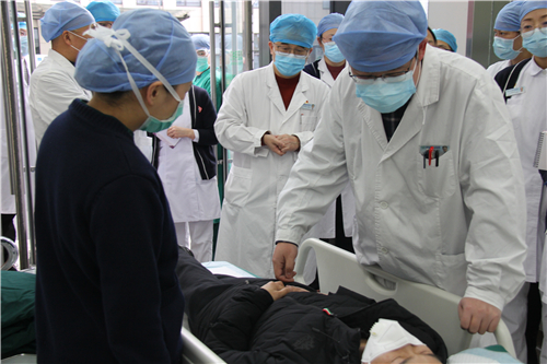 演练有条不紊地进行,在急诊手术室,医护人员做好个人防护开始手术……