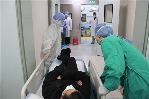 如果出现新冠肺炎疑似患者需要急诊手术该怎么办?为提高我院医务人员对新冠肺炎防控水平和疑似病例急诊手术应急处置能力,切实保障群众生命安全,2月7日下午,我院在急诊科、肠道门诊、急诊手术室及13楼普通隔离病区,组织开展了新型冠状病毒感染的肺炎疑似病例急诊手术应急演练。医院分管领导,行政、医疗、护理总值班人员及临床、医技科室主任、技术骨干等20个部门的医护人员参加了演练。