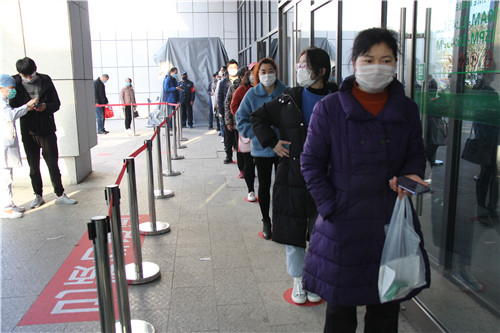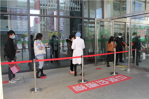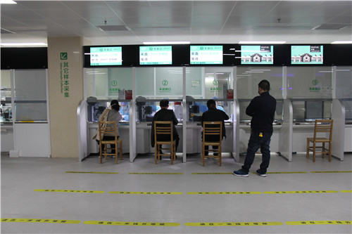 为进一步提升门诊通行速度,避免扎堆聚集,在医院门诊大厅入口处、挂号收费窗口、取药窗口、住院办理处及检验科、内镜中心人群聚集区域“请在一米线外等候”的标识十分醒目。热成像体温检测仪已启用一月有余,筛查点工作人员正为就诊患者逐一扫描“锡康码”。针对发热患者,在扫描确认“锡康码”的同时,预检分诊处工作人员再次检测体温,进行流调,及时做好分诊引导。