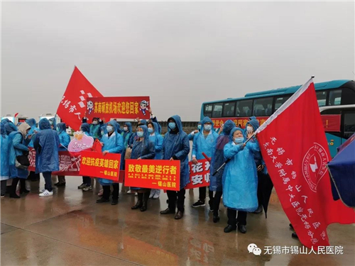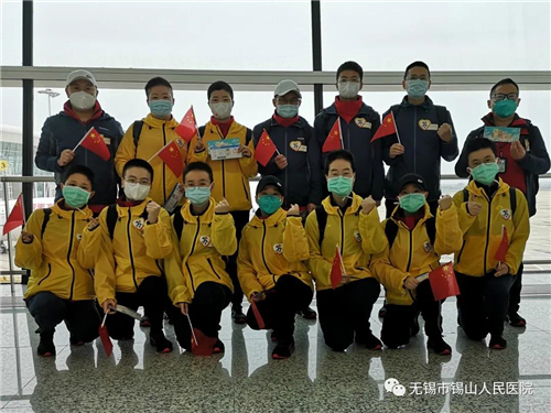 3月31日下午,我院援鄂医疗队14名勇士全部平安凯旋。锡山区卫生健康委领导与我院领导班子前往苏南硕放机场迎接。
