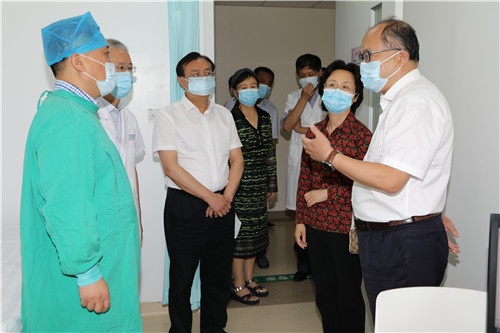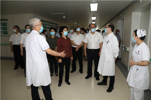 6月3日上午,无锡市人大常委会党组副书记、副主任吴峰枫,副主任华博雅,党组成员、副主任滕兰英、魏多,党组成员陈荣庆及王传军等领导一行莅临我院调研。无锡市卫生健康委党委书记、主任谢寿坤,副主任笪学荣、朱国富、丁胜等领导陪同。