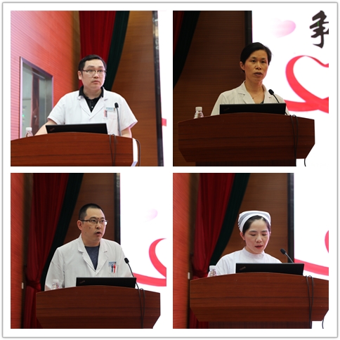 外科副主任、普外科主任朱征海、超声医学科主任阚晓纯、呼吸内科主任任登华以及护理部副主任丁英四名先进代表,分别从改善医疗服务质量管理、科室业务拓展、专科建设发展、优质护理服务等方面进行精彩的发言。他们联系工作实际,表达了各科为夺取疫情防控和医院高质量发展双胜利的坚定信心,质朴的语言流露出对各项工作取得突破的殷切期盼。