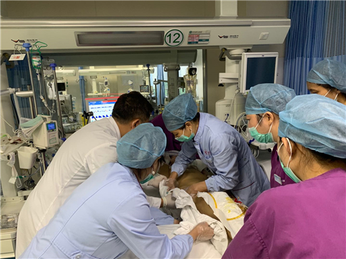 8月20号中午,孙女士遭遇飞来横祸,骑车时被一辆大货车撞倒,随即丧失了意识。随后120急救车迅速将其送到我院急诊救治。接诊医生发现其血压下降,氧饱和度偏低,全身多处皮肤软组织挫伤,立即启动了创伤中心绿色通道,采取快速补液、抗休克等急救措施,并迅速完成相关检查。大量气胸,肩胛骨、趾骨,椎骨,多发肋骨骨折、骨盆骨折时刻威胁着患者的生命,她的血压难以维持,大出血导致凝血功能紊乱,需要立即对症救治。通过会诊,创伤中心专家决定立即为患者行介入手术,栓塞出血的大动脉止血,防止出血增多导致不可逆的结局。