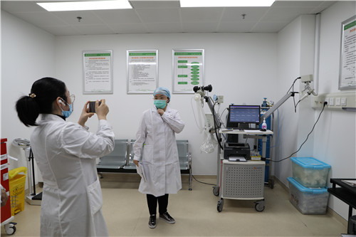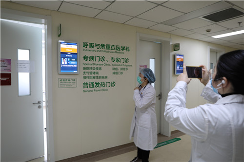 评审过程中,专家通过线上视频连线的方式,对我院呼吸与危重症医学科专科专病门诊、呼吸门诊综合诊疗室、肺功能室、呼吸内镜室、心肺运动实验室、专科病房以及呼吸重症监护病房等开展了全面的考核。现场,呼吸与危重症医学科主治医师余苗、殷明、张卿、徐晶晶等医生以及专科护士与专家进行了连线及互动,精彩的讲解、专业的回答赢得了专家的一致好评。在随后的反馈环节中,评审专家对我院PCCM项目建设工作给予了高度肯定,同时针对学科建设的相关问题提出了宝贵的指导建议。