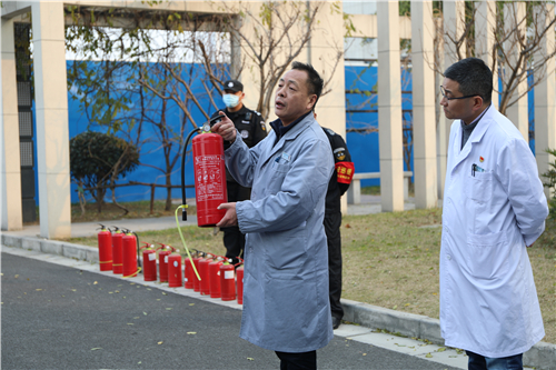 在随后的消防灭火培训中,在行政楼1号门前空地区域,全院各部门消防安全责任人在安全保卫科邵荣伟的指导下,学习了干粉灭火器的正确使用方法,开展了实践操作。华院长表示,希望大家熟练掌握干粉灭火器的使用方法,在突发火情情况下做到应对自如。