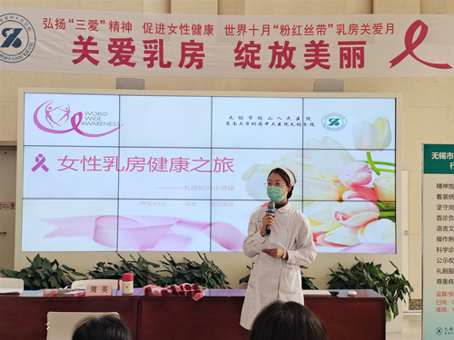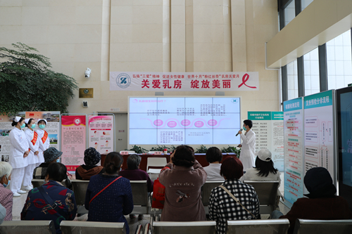 活动由外科科护士长辛惠月主持。普外科医师徐图为大家带来了一场内容丰富的乳房知识小讲座。他详细讲解了乳腺增生的症状、治疗方法和注意事项,科普了乳房肿块可能涉及的疾病以及治疗手段,强调了乳癌筛查的重要性。