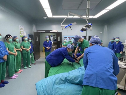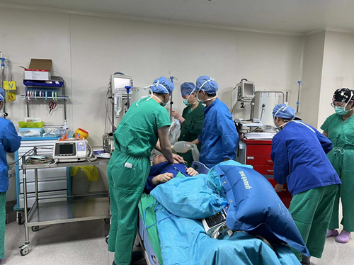“快来人,患者突发心脏骤停,推抢救车和除颤仪!”此时,手术室护士长陈新华、护士毕小花、孙彦婷等医务人员闻讯赶来,协助抢救,给予肾上腺素等药物,规范执行口头医嘱,做好用药记录。