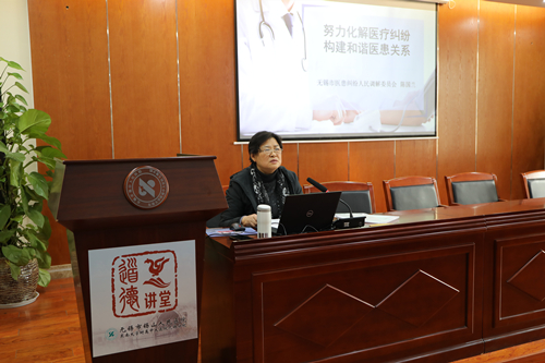 为进一步提升医务人员法律意识,提高化解矛盾纠纷的能力,有效预防和处置医患纠纷,维护医患双方合法权益,构建和谐医患关系,1月19日下午2点,在行政楼308会议室,我院法治办、医患关系办公室举办了医患纠纷预防和处置培训讲座,邀请到无锡市医患纠纷人民调解委员会陈国兰主任来院授课。部分科室负责人参与培训。