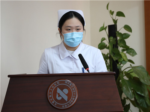 陈益飞副院长在典礼上致辞,他对新同学的到来表示热烈欢迎并寄予了殷切希望。他向大家介绍了医院2021年各项工作开展情况,他说医院去年在医、教、研和人才队伍建设等方面取得了可喜的成绩,各项工作稳步推进,发展态势良好,业务量增速较快,教学科研能力不断提升。他指出,近年来医院在院校合作办班方面积累了一定的经验,希望同学们珍惜学习平台,充分利用医院的专业技术和职业岗位资源,将理论与实际工作有机结合,扎实学习专业本领,为护理事业贡献力量。