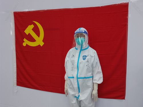 没有歌声舞蹈,没有亲友聚会,只有一个接一个的祝福,而此刻,党员史嘉顺还穿着防护服正在方舱里上班,直到中午12点半才脱下防护服。