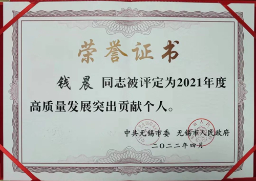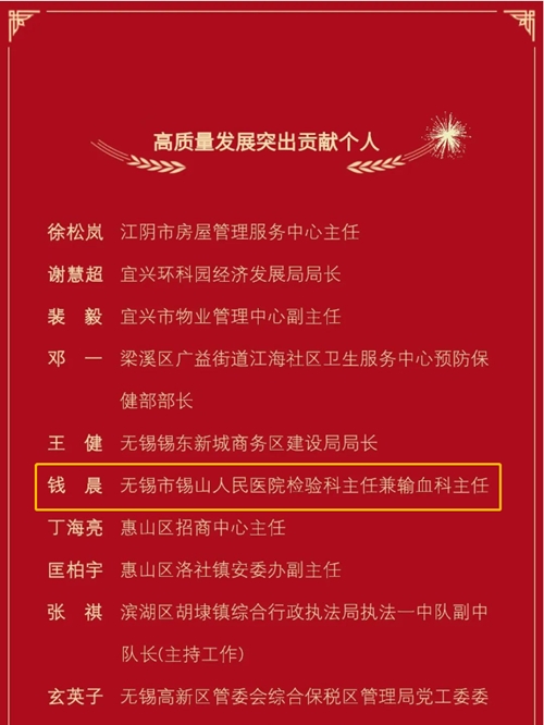 4月29日,在市委市政府召开的全市2021年度综合考核总结表彰大会上,我院检验科主任 钱晨 荣获“高质量发展突出贡献个人”。