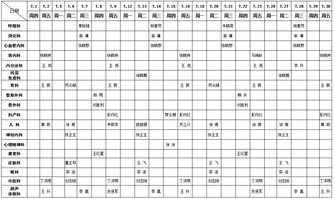 2021年7月份东南大学附属中大医院专家出诊预告