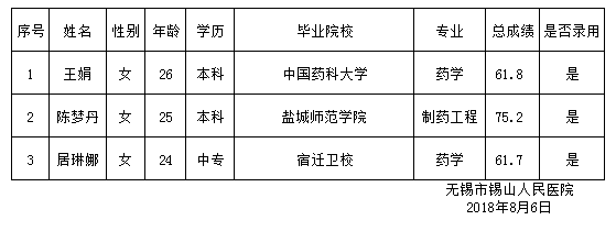 2018年静配中心辅助药师、超声科信息录入员招聘成绩公示