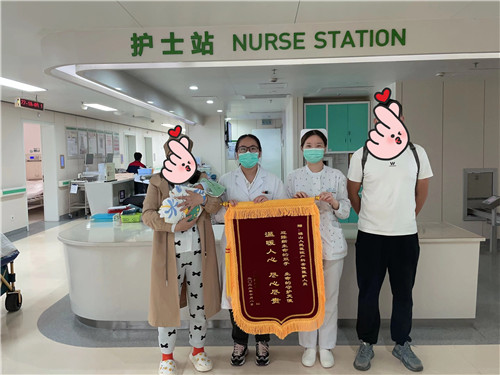 “非常感谢你们的贴心照顾,我们一家都很满意!”9月25日方女士(化名)出院时,他老公专门为七楼医护人员准备了一面写有“暖心天使科学育婴,温柔如水如沐春风”字样的锦旗。