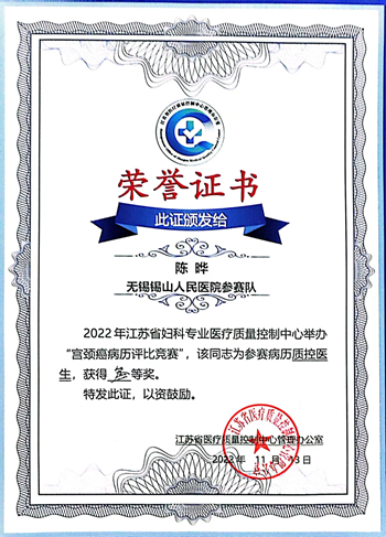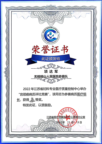 近日,从江苏省妇科专业医疗质量控制中心举办的“宫颈癌病历评比竞赛”上传来好消息,我院妇科项达军和陈晔治疗组团队荣获三等奖。