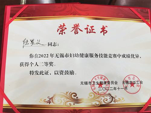 11月27日下午,从无锡市2022年妇幼健康服务技能竞赛上传来好消息,我院医务部副主任兼病案管理科科长陆显义荣获产科安全管理办公室负责人项目组二等奖。