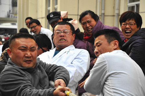 2月5日下午,冬日的阳光温暖如春。医院工会一年一度的保留节目:拔河比赛开赛了。在门诊楼南侧的林荫道下,近200名的参赛队员及围观的拉拉队员,让现场沸腾了起来。