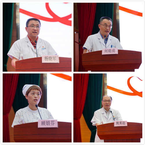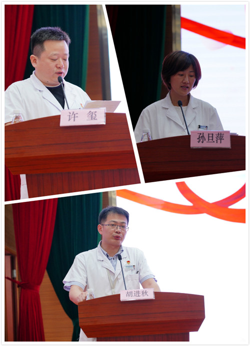 随后,内科副主任兼消化内科主任杨晓军,外科副主任兼泌尿外科主任何晓亮,产后康复中心兼妇产科门诊护士长顾娟芬,神经内科主任周其达,急诊(重症)医学科主任许玺,药剂科副主任孙旦萍,医务部副主任胡进秋7位科室代表人分别从科室业务拓展、等级医院创建、优质护理服务、重点专科创建、改善门急诊服务以及医疗质量管理等方面发言。各代表人联系工作实际,用质朴的语言表达了各科为创建等级医院齐心协力、团结奋进的坚定信心和决心,感受到各科期盼早日踏上更高平台、实现跨越发展的共同心声和美好愿望。