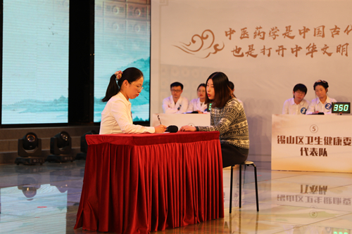 锡山区卫生健康委代表队由我院中医科熊鹰、区中医院吕薇和东北塘社区卫生服务中心金蕴三名选手组成。她们在必答题、抢答题和技能展示题的考察过程中,展现出扎实的基本功。在病案分析环节,我院熊鹰主治医师在短暂的4分钟问诊、作答过程中,流畅、精准地完成了一例妇科疾病的中医诊断,写明了其病名证型、辩证分析和治法方药,规范严谨的作答赢得了在场评委的一致好评。此外,在事宜技术题、中药识别题、宣教技能题环节,锡山代表队也展现出不俗实力,收获现场观众阵阵掌声。