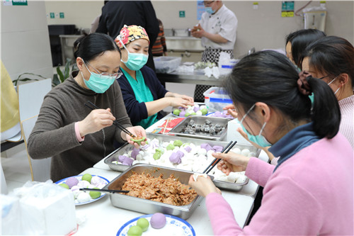喜闹元宵,巧包汤圆。元宵佳节包汤圆、滚元宵,新年的“福气滚滚来”。职工餐厅工作人员提前准备好了紫薯面、糯米面、芝麻馅和猪肉馅等食材,与医院职工共同制作汤圆。随着馅料在糯米面中滚动,一个个圆滚滚的汤圆呈现出来。不一会儿,热腾腾的汤圆出锅了,工作人员还将部分汤圆送至科室,大家欢欢喜喜品汤圆,为兔年注入满满元气。