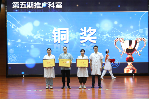 颁奖仪式上,陈辛华副院长宣布了第五期推广科室获奖名单。其中,医院办公室、财务科、党委办公室和医务部获得金奖;物资供应科和科教科获得银奖;人事科、安全保卫科和健康管理中心获得铜奖。