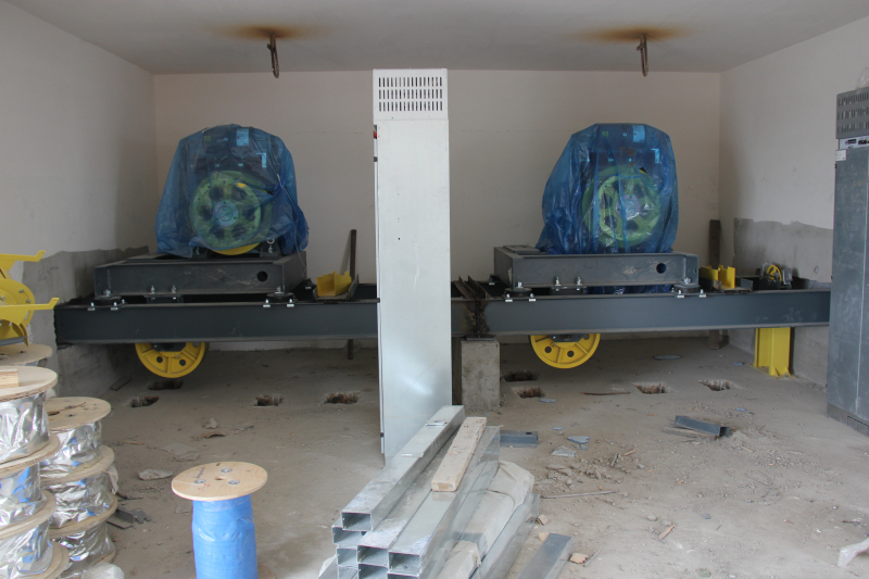 四、垂直电梯已全部安装到位并展开调试工作,目前完成总工程量的80%;扶梯已全部吊装到位。