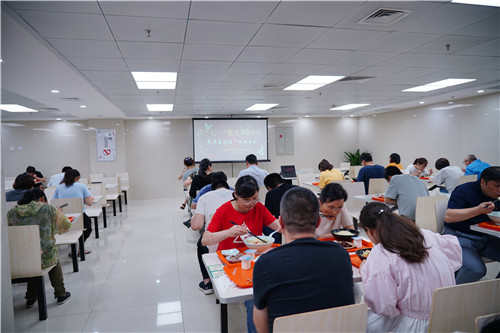7月1日中午,医院党委组织全院党员在职工餐厅集体过“政治生日”,180余名党员齐聚一堂,共同庆祝党的98岁生日。活动现场,党员们一边吃“生日面”,一边观看“学习强国”学习平台的励志视频《我宣誓—》,感受98年来中国共产党人无比坚定的理想信念。