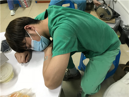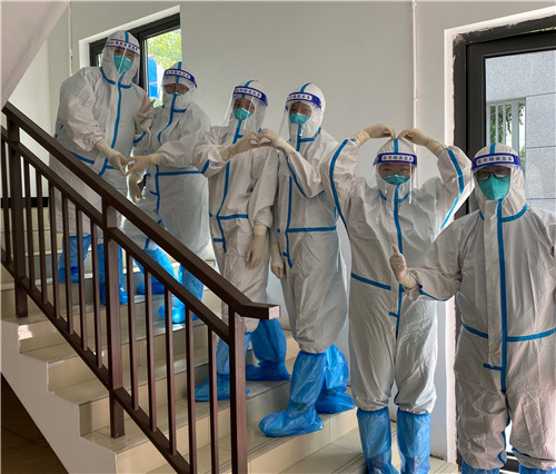 86日,他们又临时接到去风险较大的主城区为市民采样,为了充分做好防护,他们晚上抓紧时间,多次练习防护服穿脱。石小陈作为医院医疗队的队长,她悉心指导队员们正确规范穿脱防护服,“他们很有干劲,我作为队长,有责任照顾好弟弟妹妹们,我们是战友,更像是一家人。”