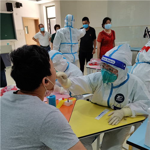 锡山22名援宁队员已经在南京奋战17天了,近两日,他们刚刚助力南京完成第六轮核酸检测,锡山医疗队员分成了两组,分别在开发区学校东校区、西校区教室内为市民进行核酸采样。截止目前已完成采样10万余人次。