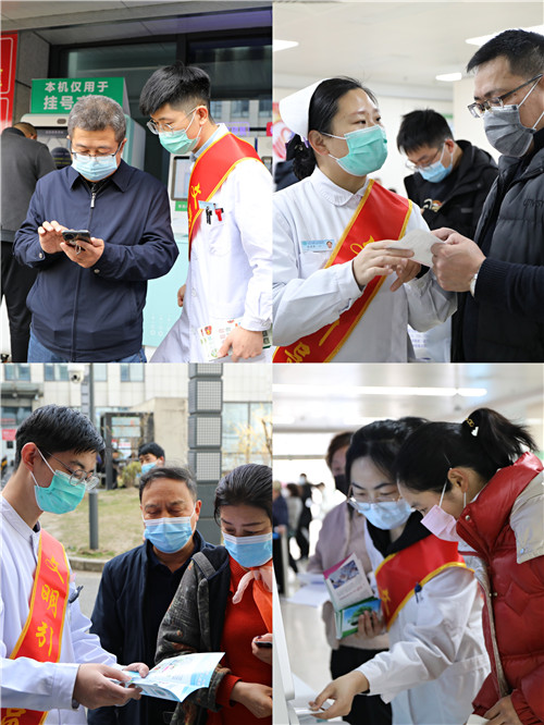 “外出回家后、饭前便后、触摸公共设施后等等情况,要用肥皂或洗手液和流动水勤洗手……”在核酸采样区,青年为市民们发放疫情防控宣传手册,向来院市民进行疫情防控知识宣讲,并指导市民进行线上预约核酸采样,减少市民排队等候时间。