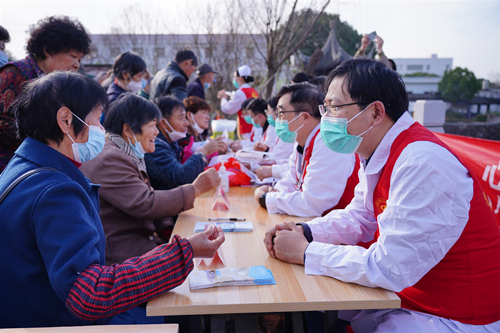 在签约仪式开始前,我院泌尿外科、心内科、呼吸科、消化内科、妇产科、皮肤科、中医科等科室专家来到严家村,为村民提供面对面健康义诊服务,耐心细致地解答村民们的健康疑惑,并提供了免费测血压、测血糖及肺功能测定等便民服务。针对春季传染病高发期,党员志愿者们还向村民发放了健康宣传手册,向村民讲解常见病、多发病预防要点,现场共发放宣传手册200余份。现场回收义诊问卷20余份,获得了村民的一致好评。