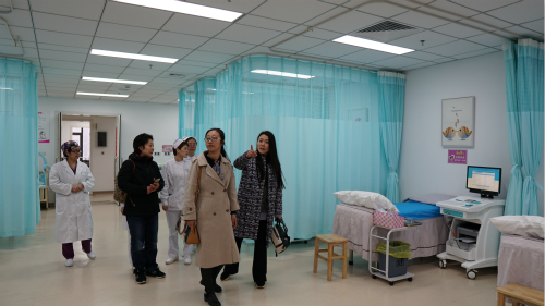 2月27日上午9:00,东南大学附属中大医院妇产科燕筠主任一行来我院参观产后康复中心,交流指导工作。执行院长范健、中大合作共建主任李伟、护理部主任陈香以及妇产科护士长们接待并进行了交流。
